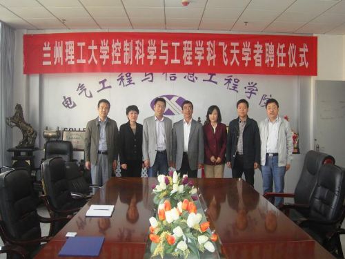 王佰成处长宣读了《甘肃省学位委员会、甘肃省教育厅关于公布首批飞天学者特聘教授和讲座教授名单的通知》(甘学位办[2014]11号)。李仁年副校长为我校控制科学与工程学科飞天学者讲座教授、中国矿业大学巩敦卫教授,飞天学者特聘教授、小黄书