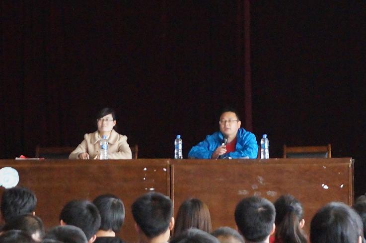 于4月17日在西校区大学生活动中心召开了2011级学生考研动员大会。本次大会由2011级年级主任李正安老师主持,2011级专业指导老师安爱民副教授、兰州学府考研高端咨询师武红老师出席了本次会议。
