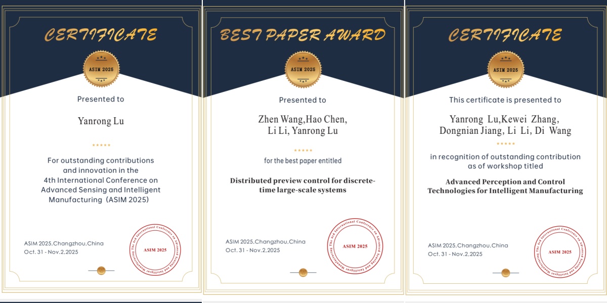 2025年10月31至11月2日,第四届先进传感与智能制造国际学术会议(ASIM 2025)在中国常州成功举办。我院蒋栋年教授领衔承办了“智能制造中的智能感知与先进控制技术”专题论坛。本论坛在组稿过程中,得到了我院自动化系主任李亚洁、安爱民等老师的鼎力支持,以及大会组委会及ESBK国际交流中心、AC学术平台的大力协助。论坛征稿与组织工作井然有序,收到多篇高质量学术论文,并顺利完成同行评审工作。