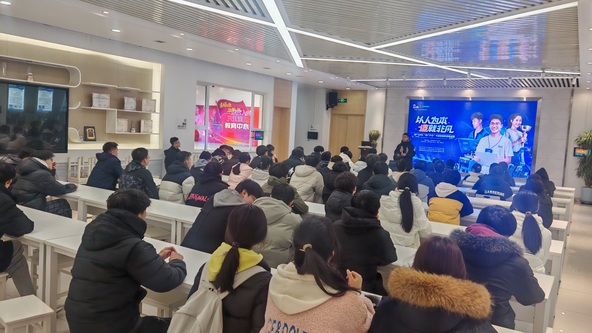 近日我校Campus-Hub(简称HUB)于红柳梦工厂一楼报告厅举办了“西门子杯”中国智能制造挑战赛(简称CIMC)的宣讲及招新活动。本次活动吸引了大量对智能制造领域充满热情的学生积极参与,有效促进了学生们深入理解以科技竞赛为平台提升工程实践能力的逻辑框架与实施路径,为其日后积极参与竞赛活动、显著提升个人工程实践能力奠定了坚实基础,并在校园内营造了一种积极探索智能制造前沿技术、踊跃参与学科竞赛的浓厚学习氛围。