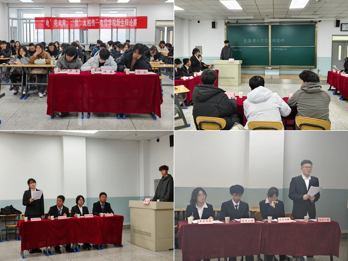 在敦雅楼C203举办“‘电’亮未来,‘信’火相传”新生辩论赛。2024级各班积极组队,经过前期一个多月的角逐,四支队伍进入决赛。