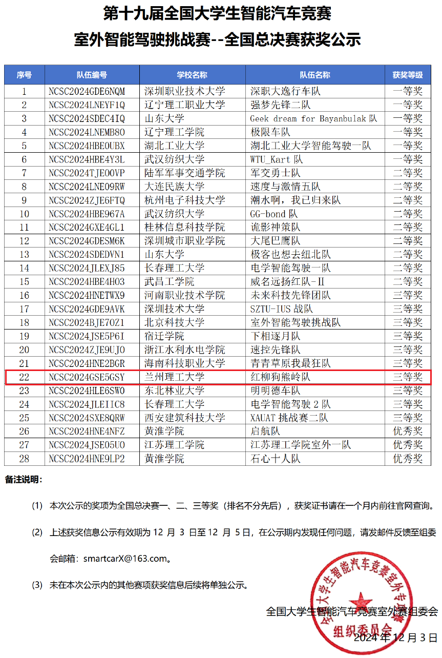 2024年11月30-12月1日,第十九届全国大学生智能汽车竞赛-室外专项赛在武汉纺织大学举行,共吸引了全国261所高校、1168支队伍报名参赛。来自我校电信工程与信息工程小黄书