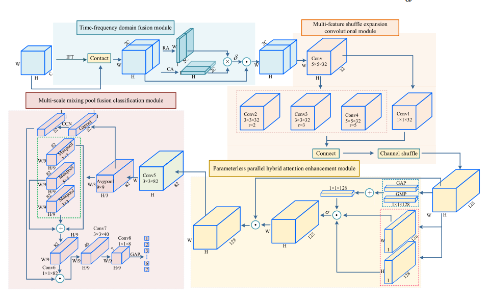 光伏阵列的随机性和间歇性输出特性影响电力系统的安全性。为提高光伏阵列故障诊断模型的性能,提出了一种新型的在线故障监测技术。首先,构建故障诊断模型:由于光伏阵列在不同故障条件下的I-V和P-V曲线存在显著差异,基于I、V和P特征构建了一个三维通道特征图。其次,搭建多源信息融合网络(MSIFN):该多模块融合模型包括时频域融合模块(TDFM)、多特征混洗扩展卷积模块(MSECM)、无参数并行混合注意力增强模块以及多尺度混合池化融合分类模块(MMPCM)。最后设计了多策略融合鲸鱼优化算法(MSFWOA):针对原始鲸鱼优化算法的不足,构建基于透镜成像的时间控制、参数修改和贪婪控制策略,以优化MSIFN的超参数。